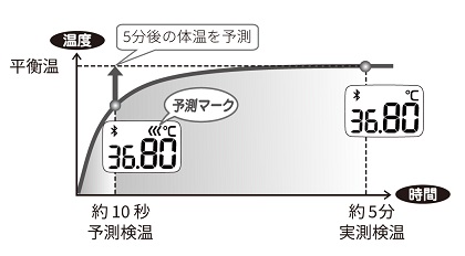 実測式で毎日5分間体温を測るのは難しい、という方は短時間で予測検温値を出してくれる予測式での検温も可能です。