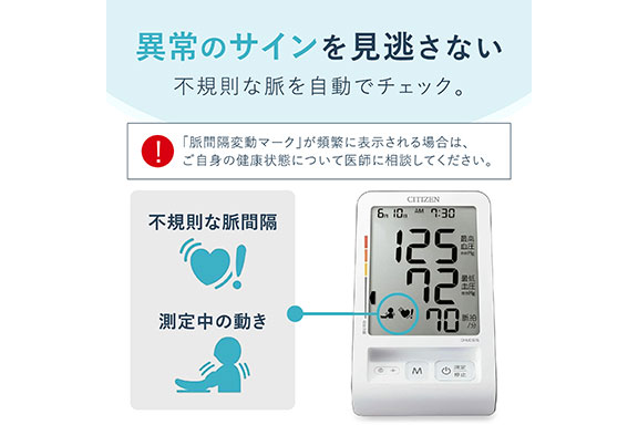 - ※「脈間隔変動マーク」が頻繁に表示される場合は、ご自身の健康状態について医師に相談してください。