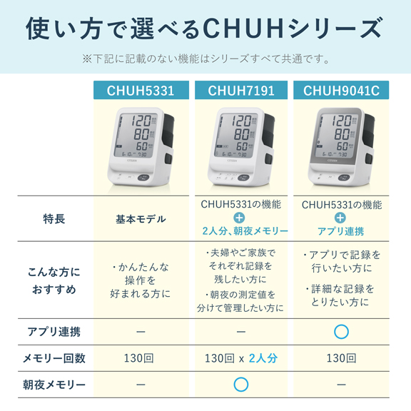 | 販売名 | シチズン上腕式血圧計 CHUHシリーズ |