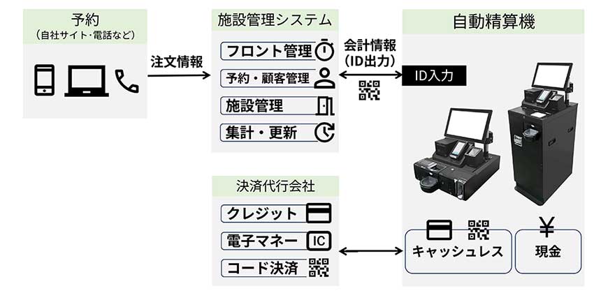 APIを用いて連携させることで、お客様のアプリケーションサーバー(現行システム)に自動精算機をアドオンすることが可能です。これにより、自動精算対応における各デバイスの開発工数を削減する事ができます。